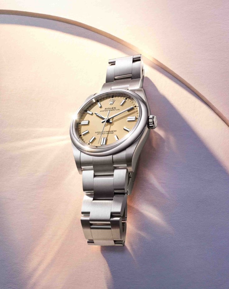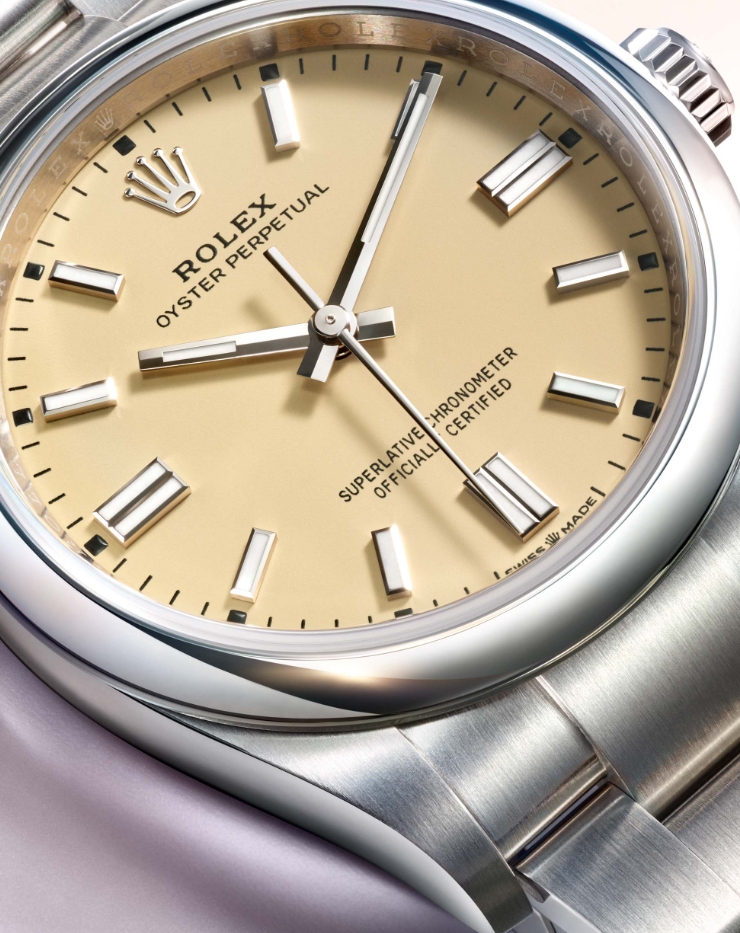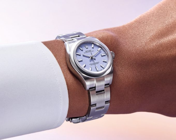 All of the updated Rolex Oyster Perpetual models are paired with the brand’s classic three-link Oyster bracelet, which is crafted from Oystersteel (904L stainless steel) to match their cases. Additionally, unlike the stainless steel Oyster bracelets found on other replica Rolex watches UK like the GMT-Master II and Daytona that have high-polished center links, the bracelets fitted to the Oyster Perpetual series feature entirely brushed surfaces, which further helps to accentuate their high-polished smooth bezels. Given that the Oyster Perpetual is Rolex’s entry-level model, the bracelets are completed by the brand’s standard Oysterclasp, although it still includes the Easylink extension system, which allows users to either expand or contract their bracelet by 5mm without the use of any tools.