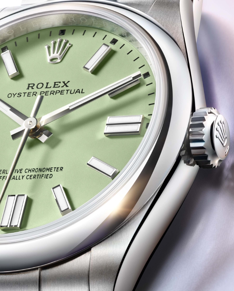 The new dials for the updated AAA copy Rolex Oyster Perpetual collection watches embrace a much softer appearance than the ultra-saturated hues that previously characterized the series, and while they aren’t nearly as vibrant or as eye-catching, they undeniably offer a greater degree of everyday wearability. The three new dial colors being introduced for 2025 are lavender, beige, and pistachio, and all of them are characterized by matte lacquer surfaces, which further represents a departure from the bright and punchy gloss dials of the previous generation. Although the Celebration dial and many of the colorways that comprise it have now been discontinued, some of the colors still remain options for select sizes within the lineup. For example, the new Oyster Perpetual 41 can still be purchased with a bright green dial, and the 36mm model is still available with both candy pink and turquoise dial options.
